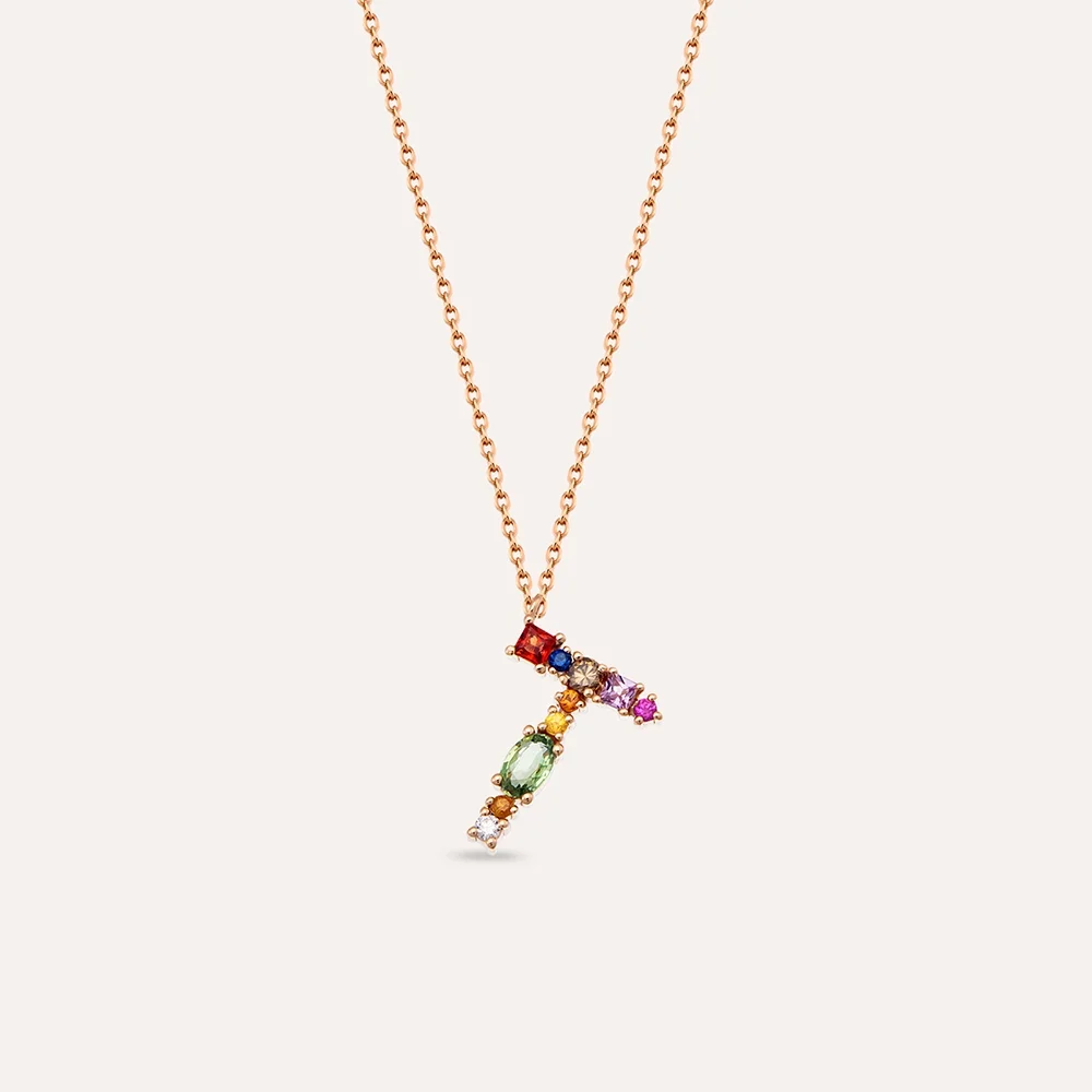 0.56 CT Brown Diamond and Multicolor Sapphire T Letter Pendant