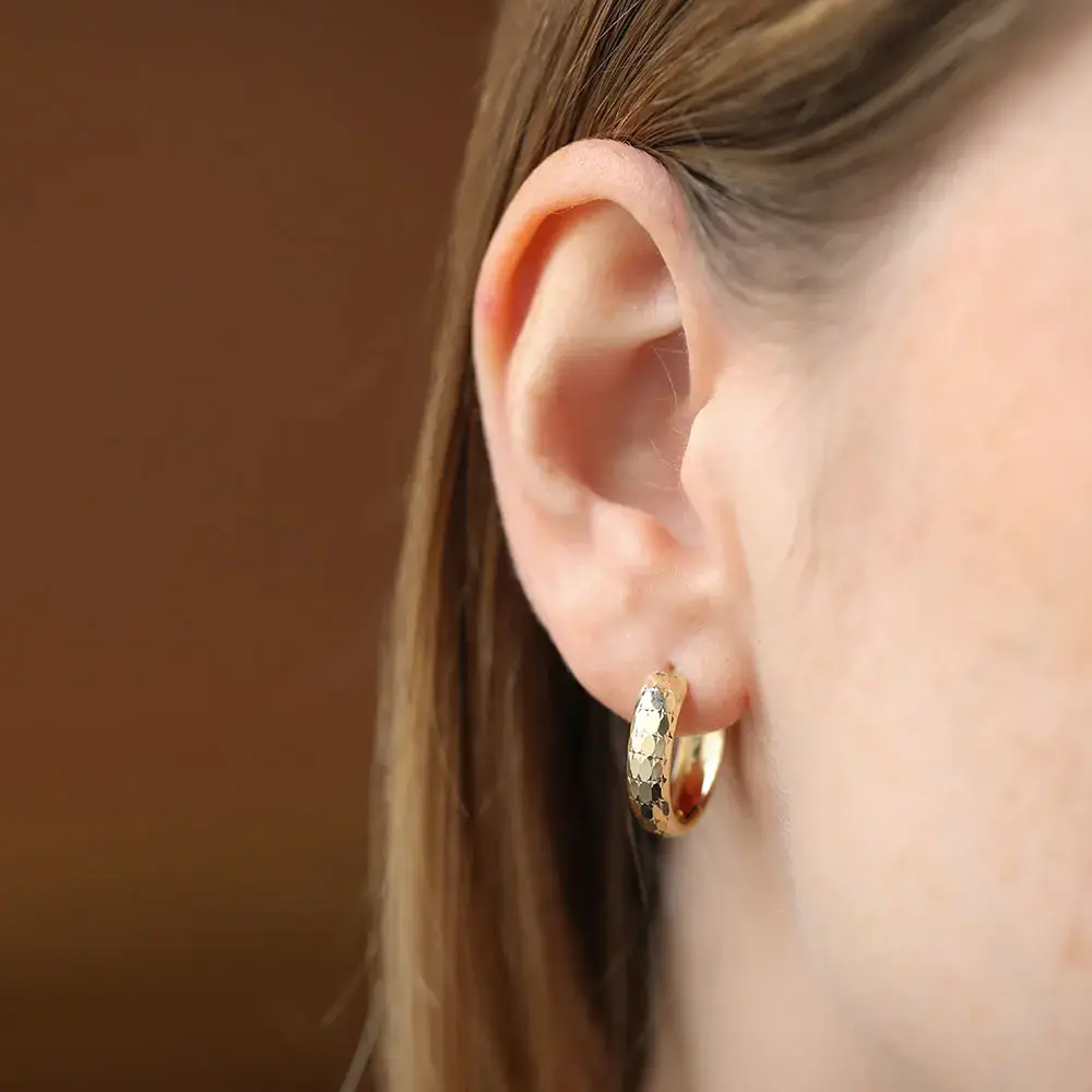 The dimension of Clay Yellow Gold Hoop Earring is 20.00 mm.
