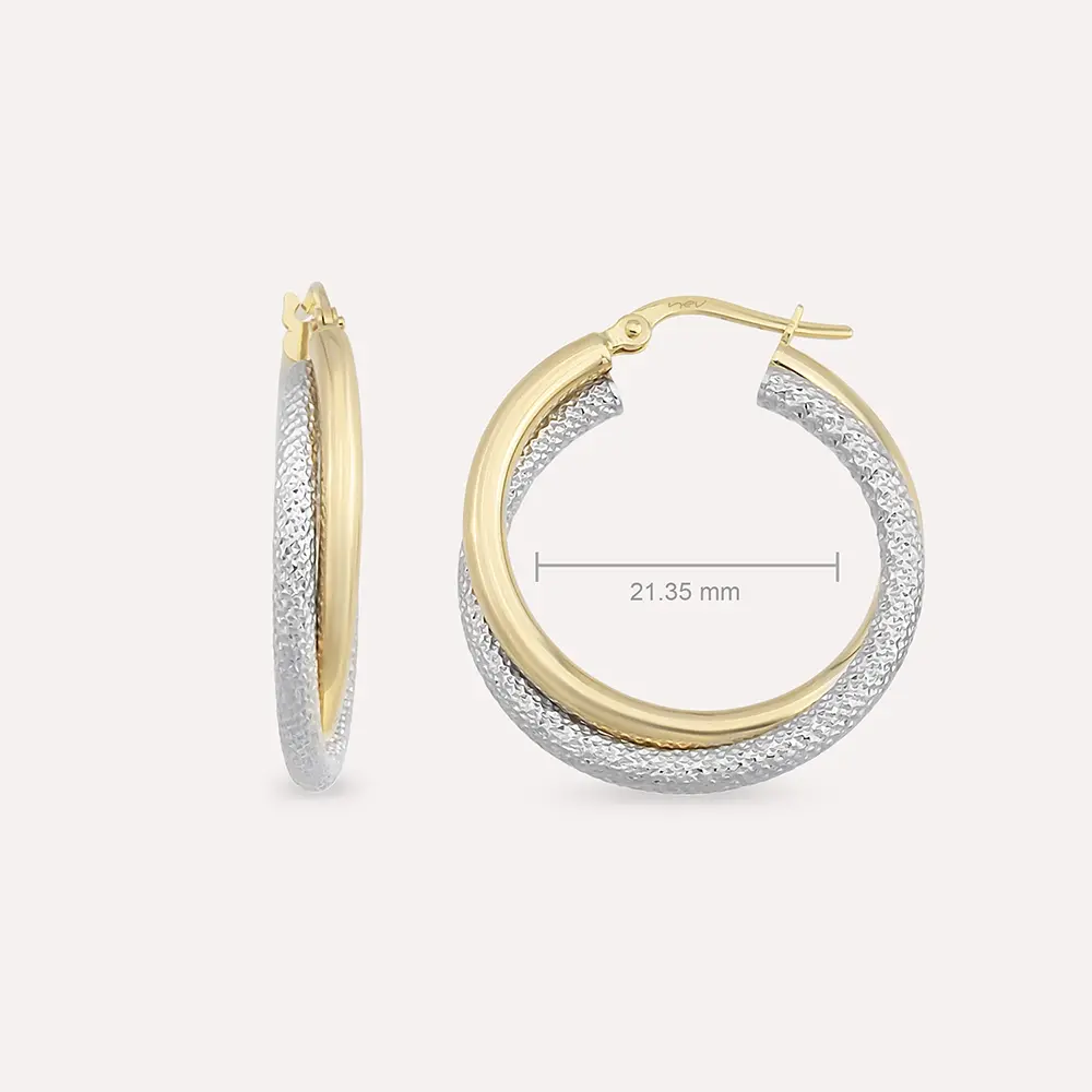 The dimension of Dual Medium Yellow Gold Hoop Earring is 21.35 mm.