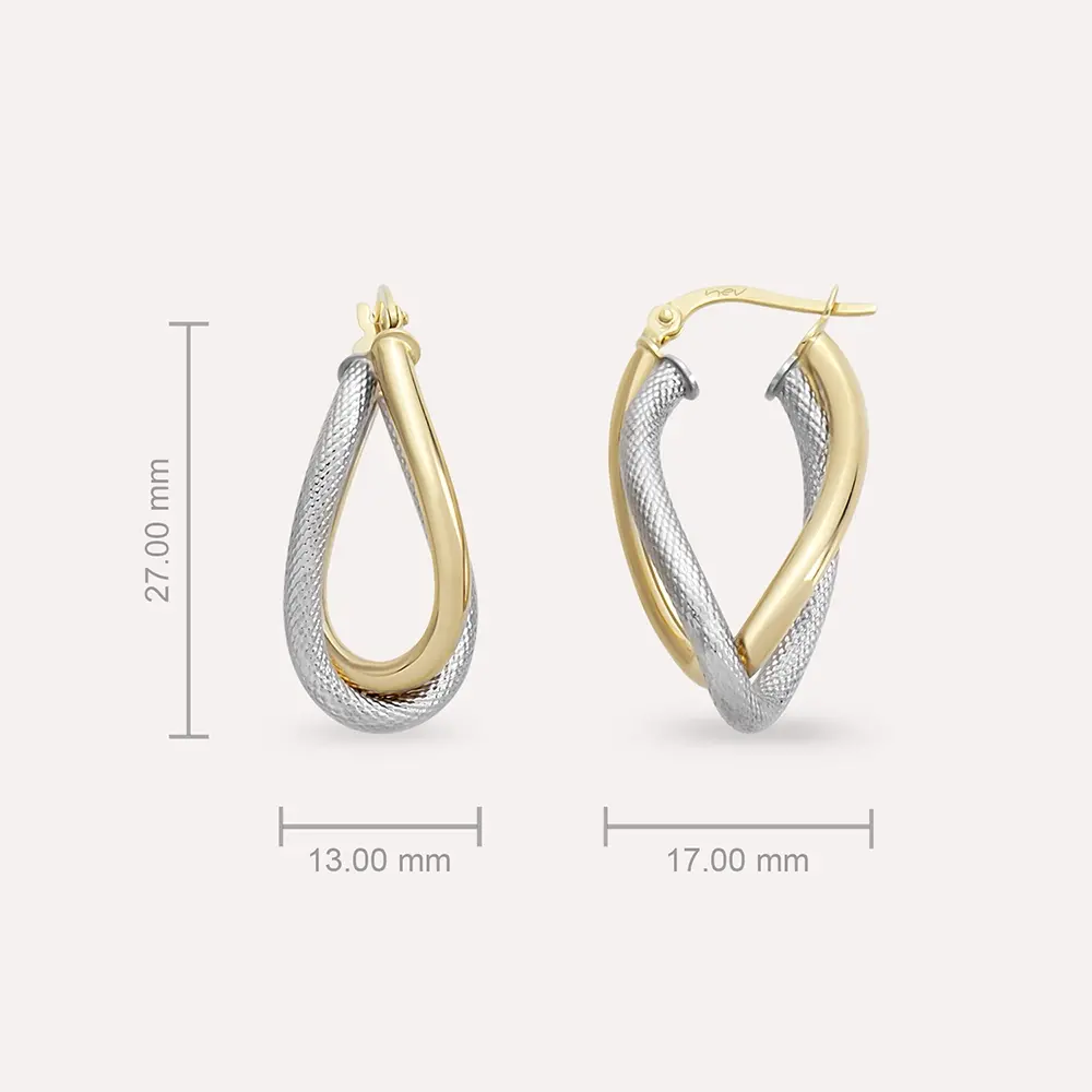 The dimension of Molten Yellow and White Gold Hoop Earring is 14.00 mm.