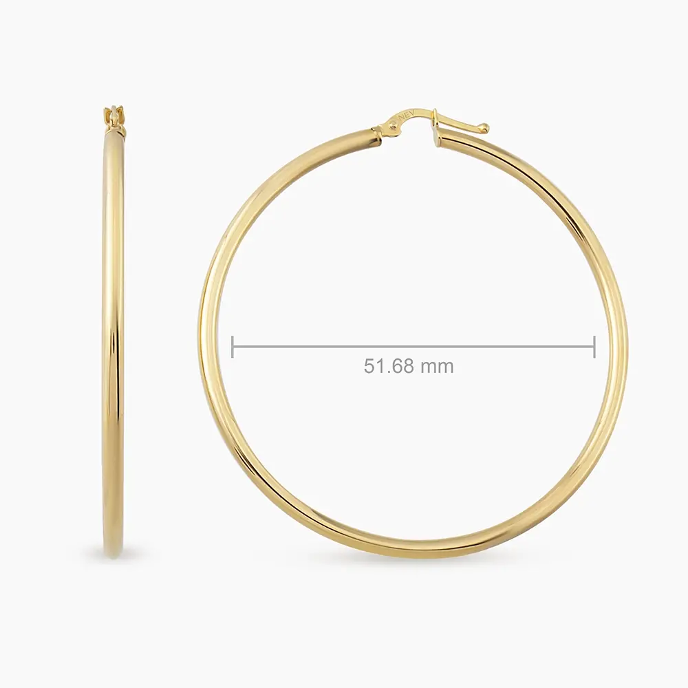 Luna XXL Sarı Altın Halka Küpe modelimiz 51.68 mm çapındadır.