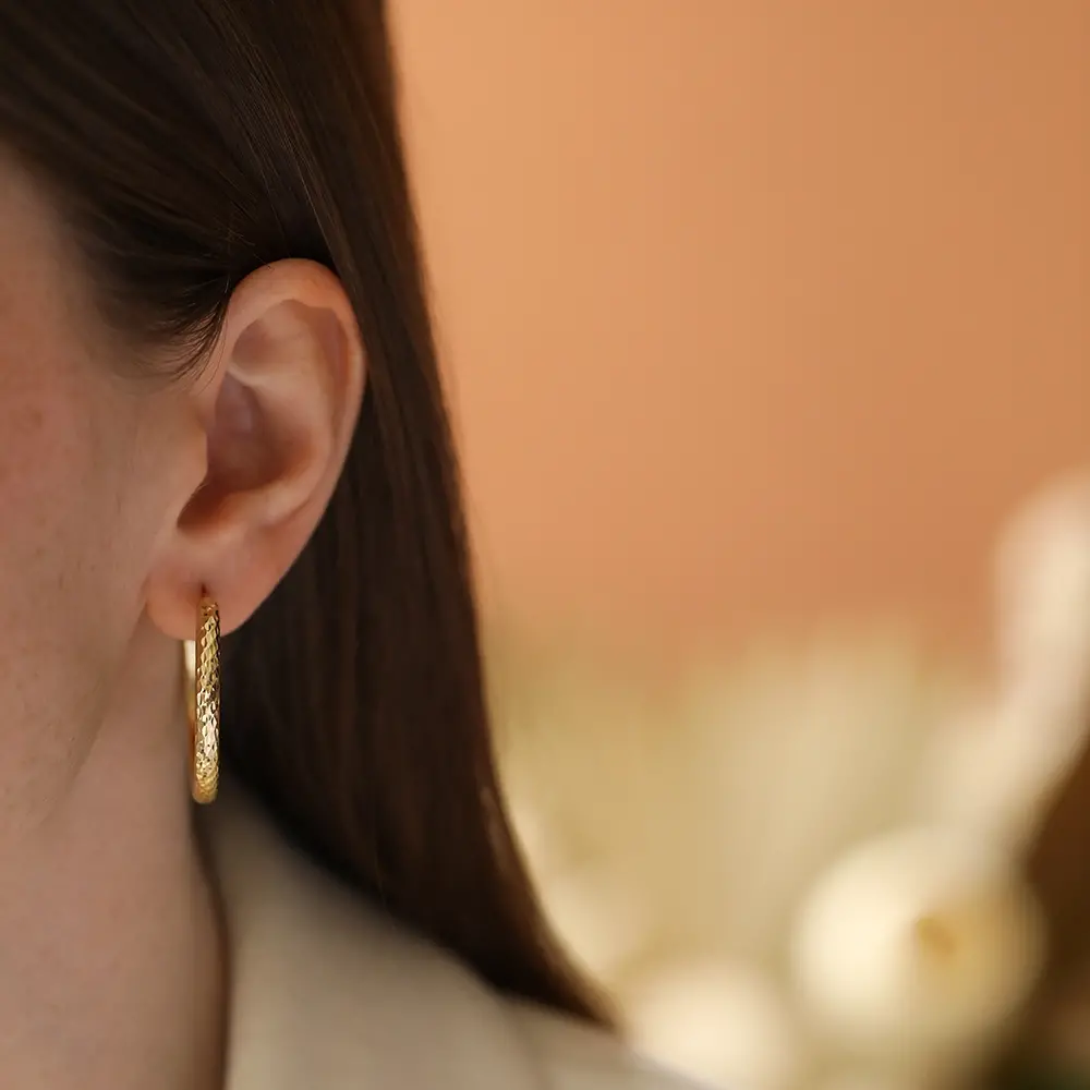 Orla Sarı Altın İtalyan Halka Küpe modelimiz 30.32 mm çapındadır.