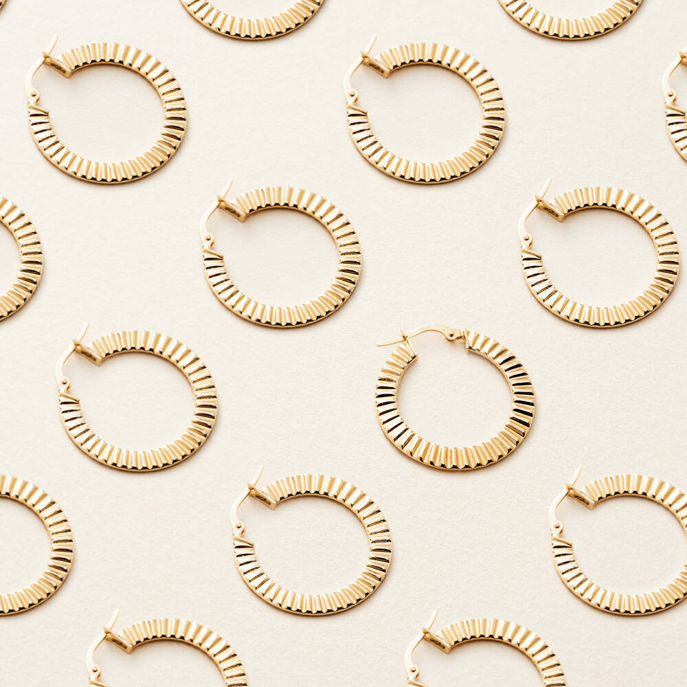 The dimension of Ruffle Yellow Gold Hoop Earringis 27.40 mm.
