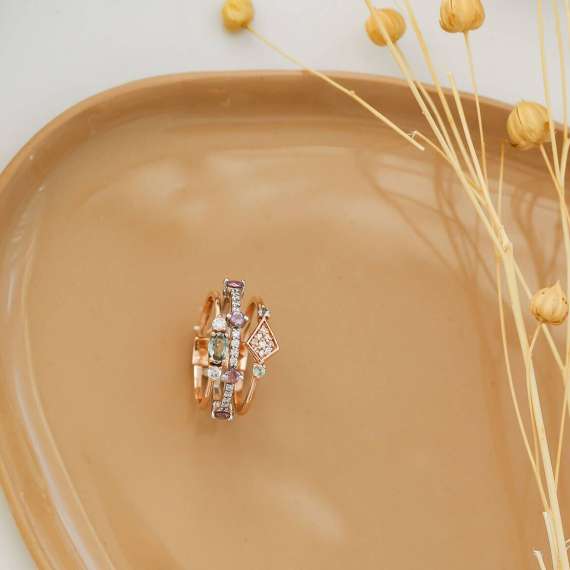 Gelince Haber VerRengarenk safir ve zarif pırlantanın bir araya gelişinin en dikkat çekici ürünlerinin yer aldığı "Kokteyl" koleksiyonumuzun üyelerinden bizi olan yüzüğümüzü, saten dökümlü lila bir bluzla bir araya getirebilirsiniz.
